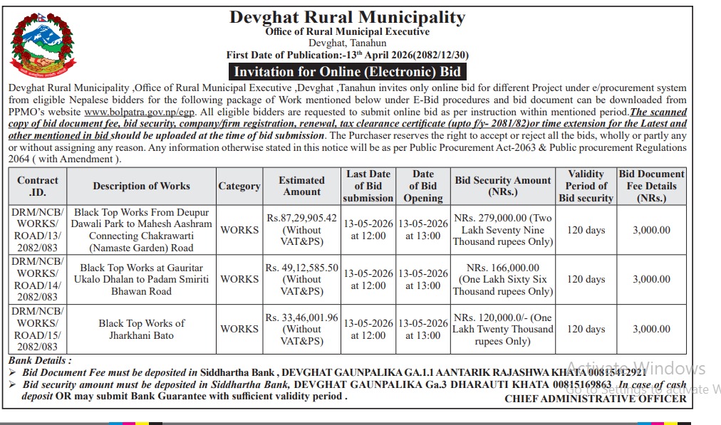 सार्वजनिक खरिद/बोलपत्र सूचना