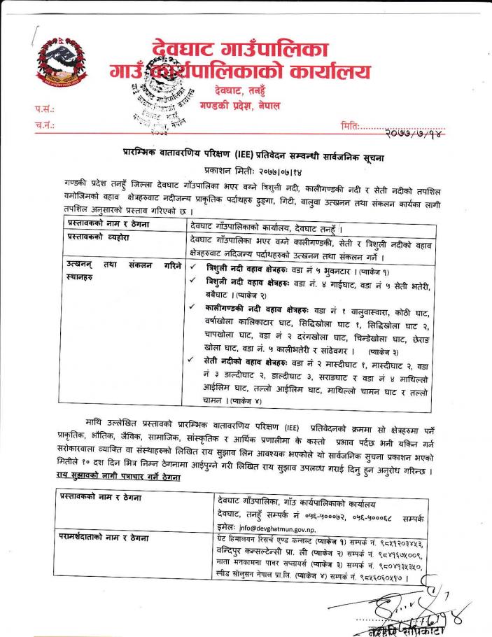 प्रारम्भिक वातावरणीय परिक्षण(IEE) सम्बन्धी सार्वजनिक सूचना ।