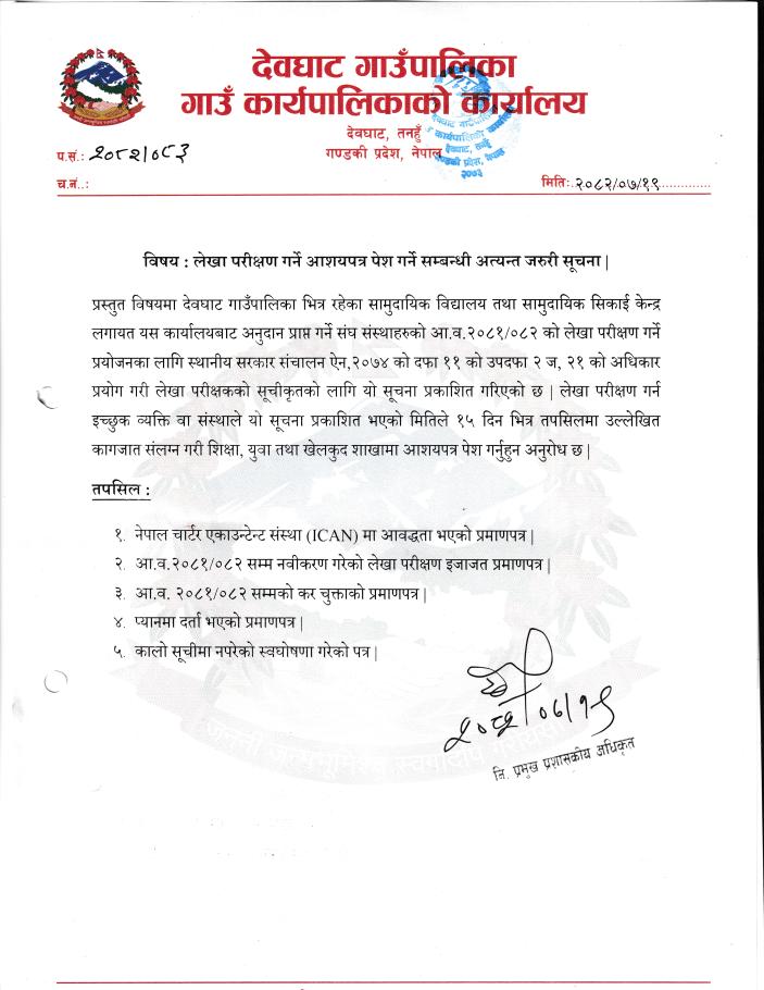 लेखा परीक्षण गर्ने आशयपत्र गर्ने सम्बन्धी अत्यन्त जरुरी सूचना+
