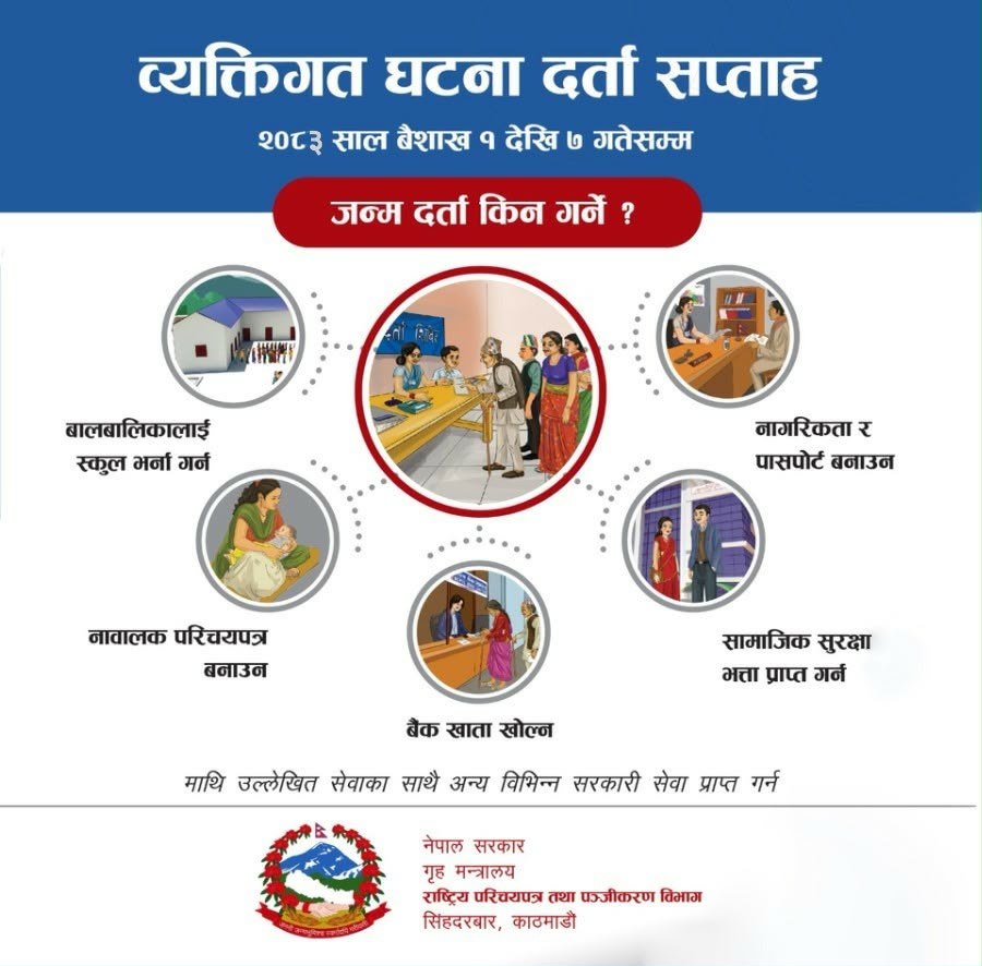 » व्यक्तिगत घटना दर्ता सप्ताह - २०८३ साल वैशाख १ गतेदेखि ७ गतेसम्म (७-दिन)