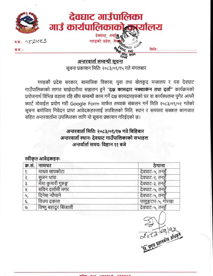 दक्ष कामदारको नक्शांकन र दर्ताको लागि तथ्यांक संकलक आवश्यक सम्बन्धी सूचना